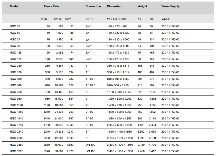 Новое поколение адсорбционных осушителей производства ATS S.r.l. серии HGO позволяет получить сжатый воздух с точкой росы под давлением -40⁰С, что полностью соответствует классу 2 по стандарту DIN ISO 8573-1