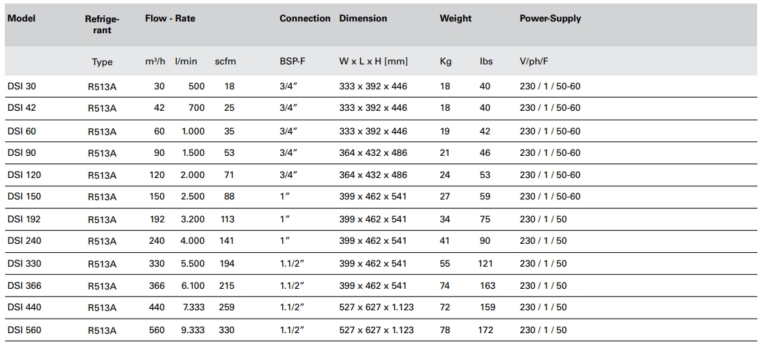 Компания ATS разработала серию Silver, отвечающую потребностям самых требовательных клиентов и гарантирующую оптимальное соотношение цены и качества на рынке. Все модели оснащены электронной платой управления с системой двух датчиков, которая контролирует точку росы и давление конденсации. Алюминиевый теплообменник был разработан и запатентован для обеспечения максимальной производительности и минимального падения давления. Серия Silver подходит для малого и среднего бизнеса. Серия Silver отвечает потребностям клиентов, ищущих оптимальное соотношение цены и качества. Компания ATS разработала и разработала серию DSI с заботой об окружающей среде, используя экологически чистые газы и перерабатываемые материалы.