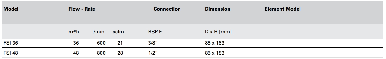 - M = 1μ solid / 0,1 mg/m3 oil (class 2 ISO8573-1)
